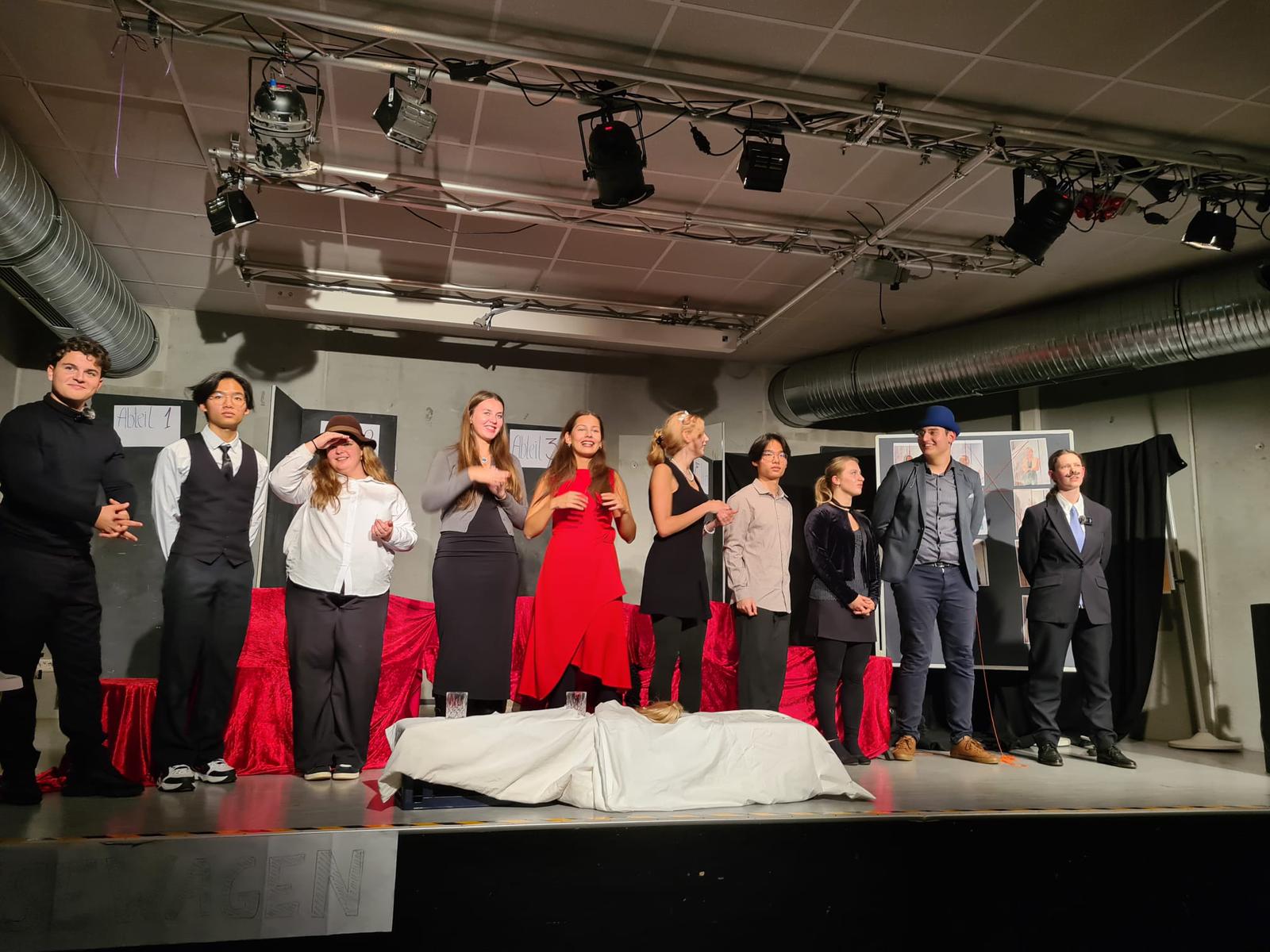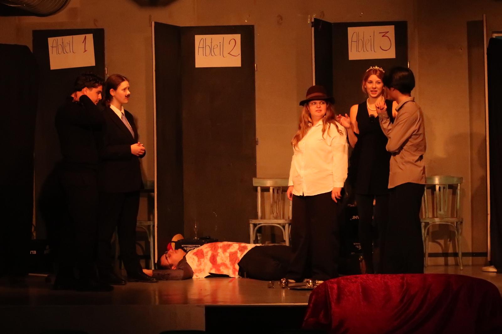 Im Mittelpunkt der Handlung steht ein rätselhafter Mord während der Zugfahrt. Schnell wird klar, dass jede Figur etwas zu verbergen hat. Nach und nach geraten alle Passagiere ins Visier der Ermittlungen, was die Spannung bis zum Schluss aufrechterhielt. Besonders überzeugend war, wie die Schülerinnen und Schüler die unterschiedlichen Charaktere darstellten – von nervös und verdächtig bis selbstbewusst und geheimnisvoll.